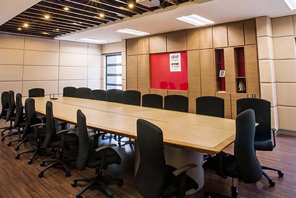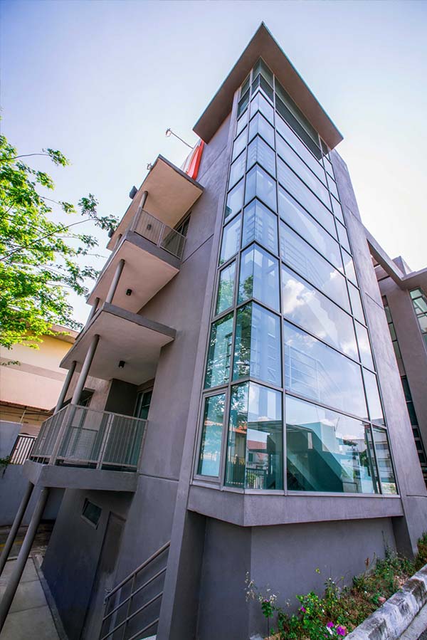 Main entrance stands a free standing bare faced concrete wall to greet visitors representing the company’s role in journalism and in support of free speech and reporting on factual basis. Services are grouped on the east side of the building to free up space for a multimedia open plan workspace and amenities open for public such as multi-purpose hall and research centre. All staff enjoy abundant daylight and view through glass windows. The interior space are designed to express externally with the usage of mass, void, shadow, and colours. The corporate red colour was used as feature colour of the building internally and externally. Horizontal aluminium sun shade louvres are incorporated onto windows to treat glare from sunlight and heat penetration into the building. End result is a simple and environmentally friendly building.